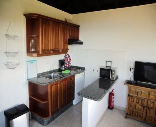 El apartamento es ideal para 2 personas y dispone de una cocina-salón y un dormitorio con cama doble y acceso a una gran terraza en la azotea. El acceso se realiza por una escalera, por lo que no se recomienda para personas con ciertas dificultades motoras o movilidad reducida.