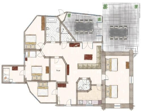 Casa es la casa más grande, antigua y céntrica de la finca, y al mismo tiempo un cómodo apartamento vacacional en una finca canaria. Casa es ideal para hasta 8 personas. En aproximadamente 220 m² se encuentran cinco dormitorios, dos baños con ducha y uno con bañera, una sala de estar con un gran televisor de pantalla plana, una veranda con acceso a la terraza cubierta y una cocina. Ya sea finca con piscina o vacaciones de senderismo en Tenerife, aquí toda la familia disfrutará al máximo.