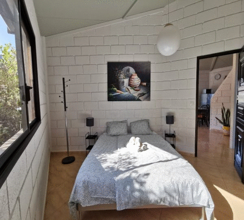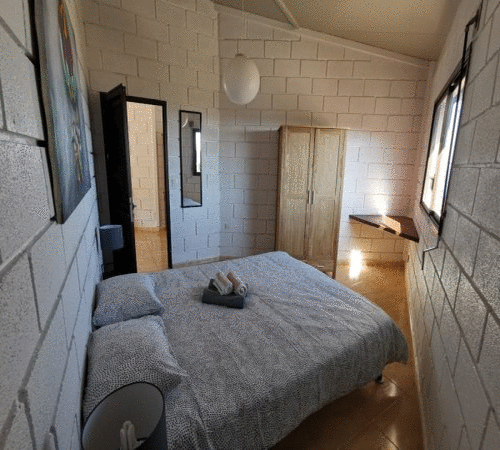 Consta de dos dormitorios con camas dobles (cada una de 1,60 m de ancho), un baño con ducha y un aseo separado, así como una amplia cocina-salón. Allí, un sofá cama ofrece una quinta opción para dormir.