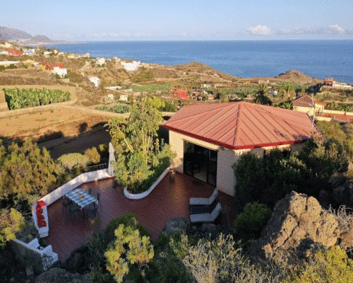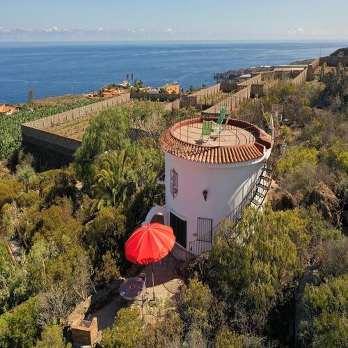 ¡Pase sus vacaciones en una finca en Tenerife en el Parasol! Esta casa luminosa es ideal para familias que desean disfrutar de sus vacaciones en el verde norte de Tenerife con unas vistas impresionantes. Se encuentra en la parte superior de la finca y tiene la forma hexagonal de un parasol. La subida bastante empinada hasta la casa se ve recompensada con una vista espectacular.